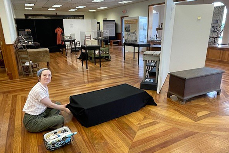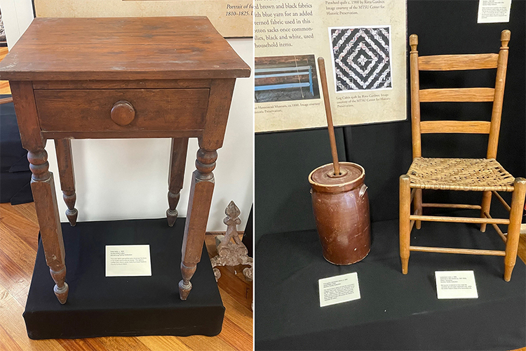The Heritage Center display features handcrafted furniture the families acquired, books they read, handstitched quilts and textiles they produced, and the games and toys they provided for their children.