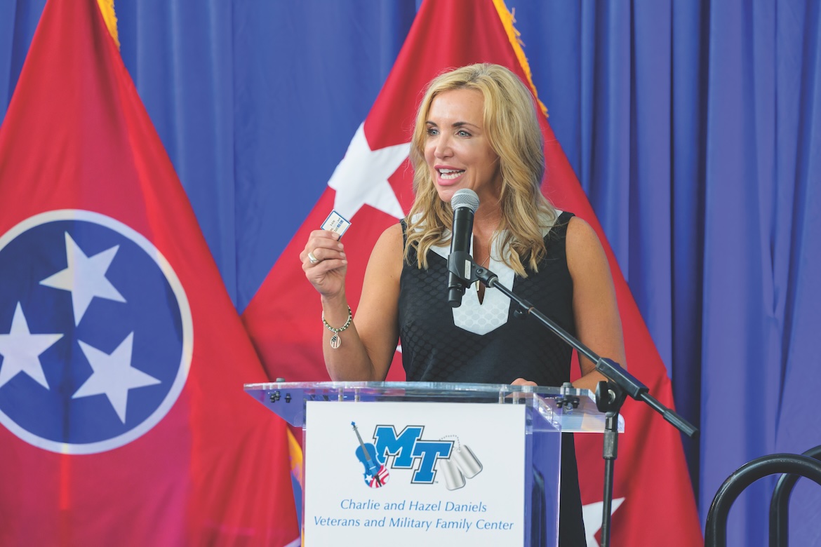 During an economic downturn and slowdown in her College of Liberal Arts position, she asked to continue working on veterans issues at MTSU and by 2009 spearheaded the Veterans and Military Affairs Committee.