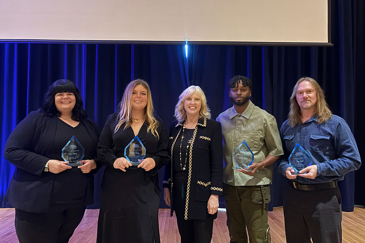 MURFREESBORO, Tenn. — Middle Tennessee State University’s College of Media and Entertainment recently inducted four extraordinary alumni into its prestigious Wall of Fame, continuing a 24-year tradition of honoring industry leaders whose careers reflect excellence, innovation and deep ties to the university.