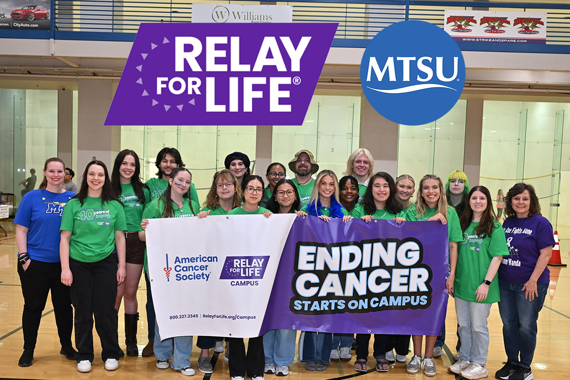 The Relay for Life event is supported by campus partners, including MTSU Engage, the Department of Health and Human Performance, the College of Liberal Arts, MT Dining and University College, along with student organizers and service-learning participants.