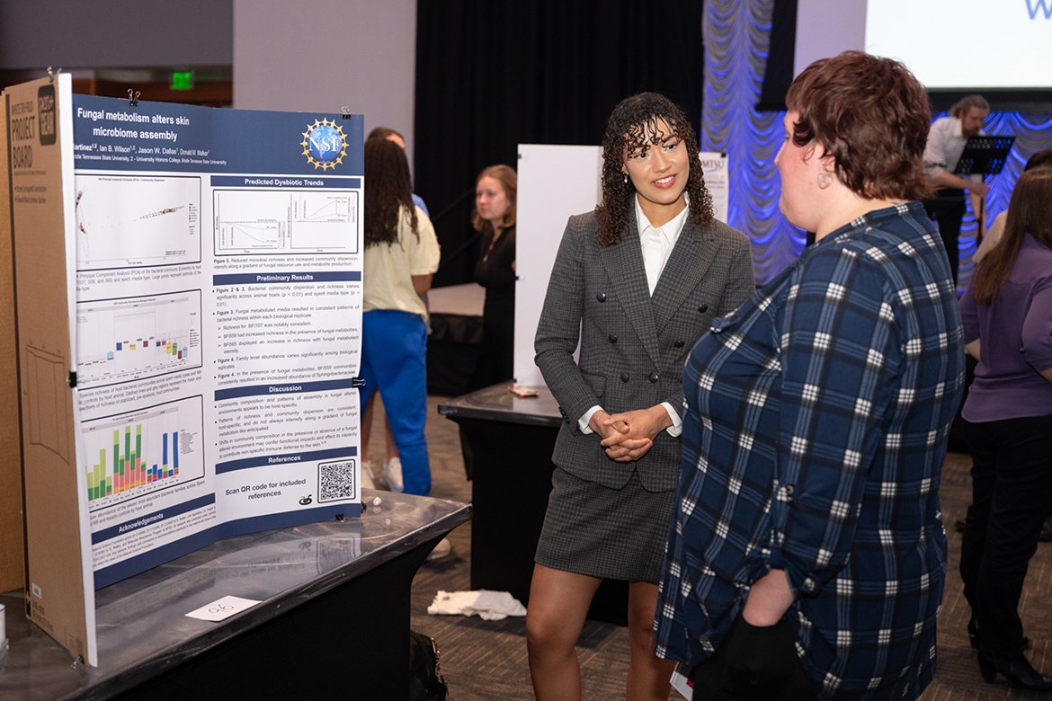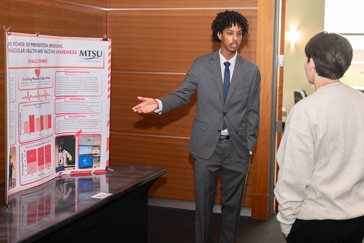 “The number of student presenters was the highest since I began working at MTSU four years ago,” Medrano said. “The percentage of graduate student participation skyrocketed, and we saw increased faculty support through volunteer judges and attendees. Community members joined us this year as well, along with families of student presenters.”